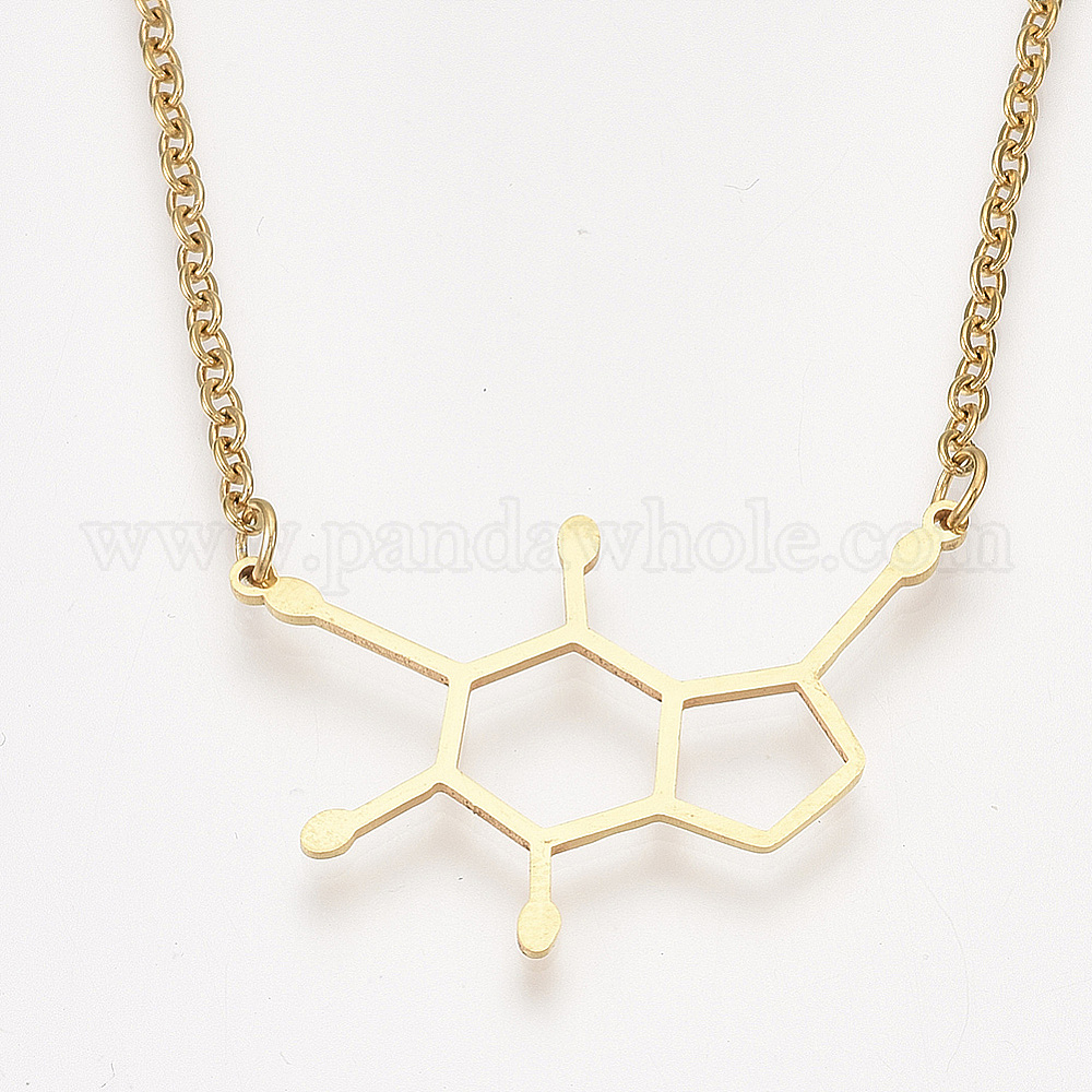 • Золотой 201 подвесные из нержавеющей стали ожерелья, с кабельными цепями, молекулярная структура дофамина, золотые, 17.5 дюйм (44.5 см), 2 мм, Молекулярная структура дофамина: 22x32.5x1 мм