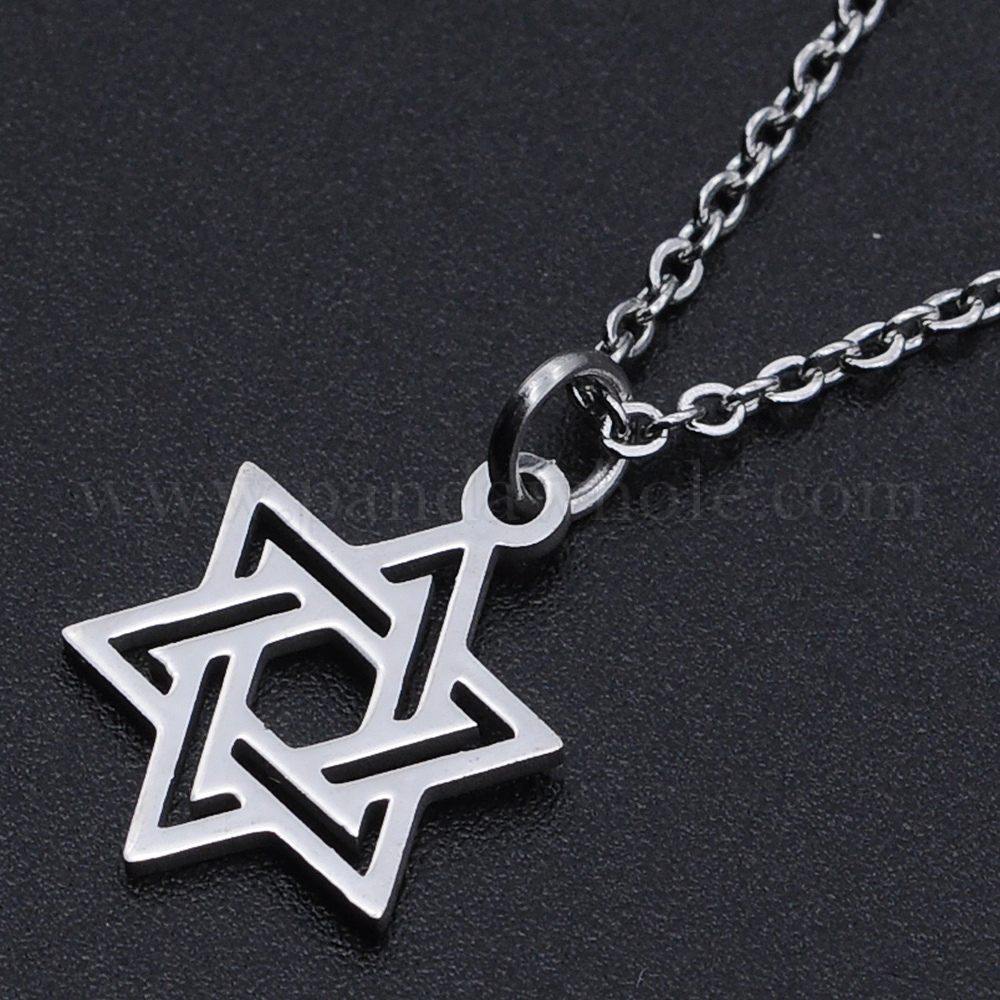 201 подвесные из нержавеющей стали ожерелья, с кабельными цепями и когтями омара застежками, для евреев, звезда Давида