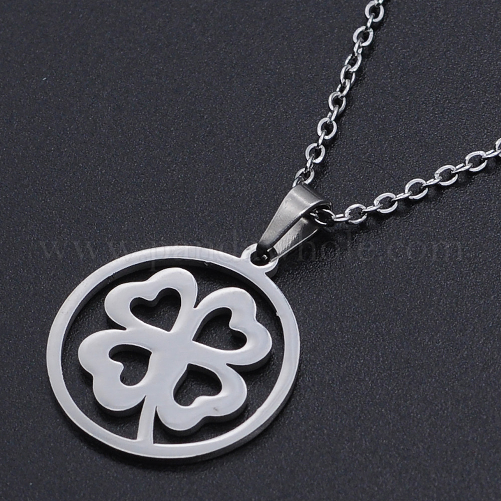 201 из нержавеющей стали ожерелья подвески, с кабельными цепями и когтями омара застежками, плоские круглые с клевером