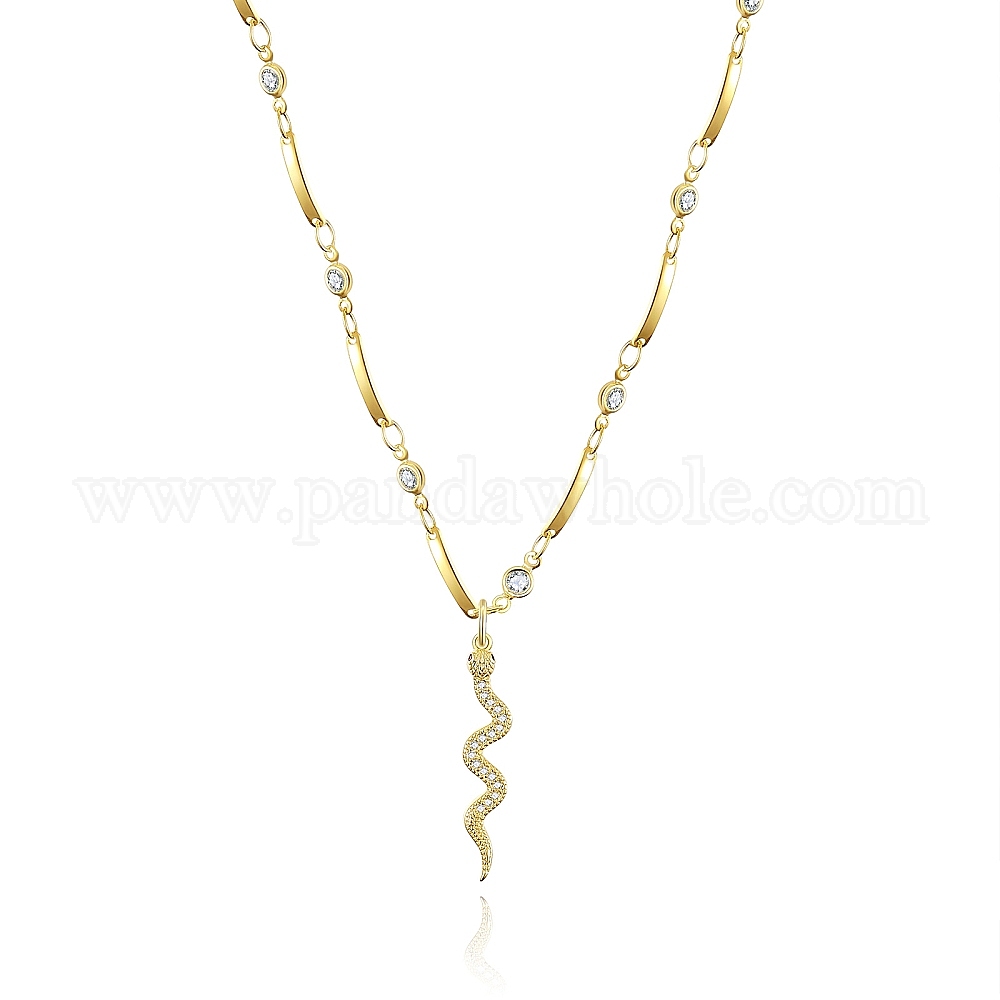 • Золотой Колье с кулоном из латуни со змеиным паве и кубическим цирконием, с латунными цепочками ручной работы из бисера и 304 застежками-клешнями из нержавеющей стали, золотые, 17.72 дюйм (45 см)