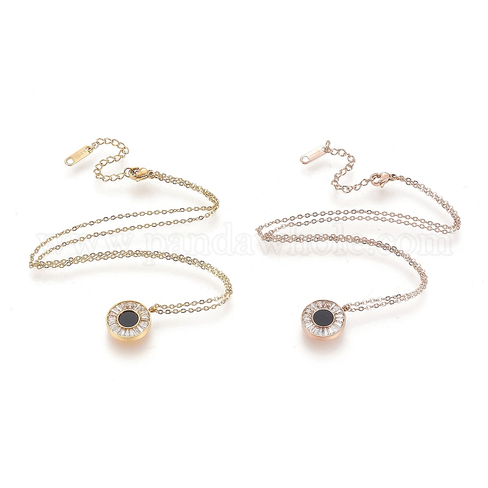 304 подвесные из нержавеющей стали ожерелья, с прозрачным фианитом и смолой, плоско-круглые