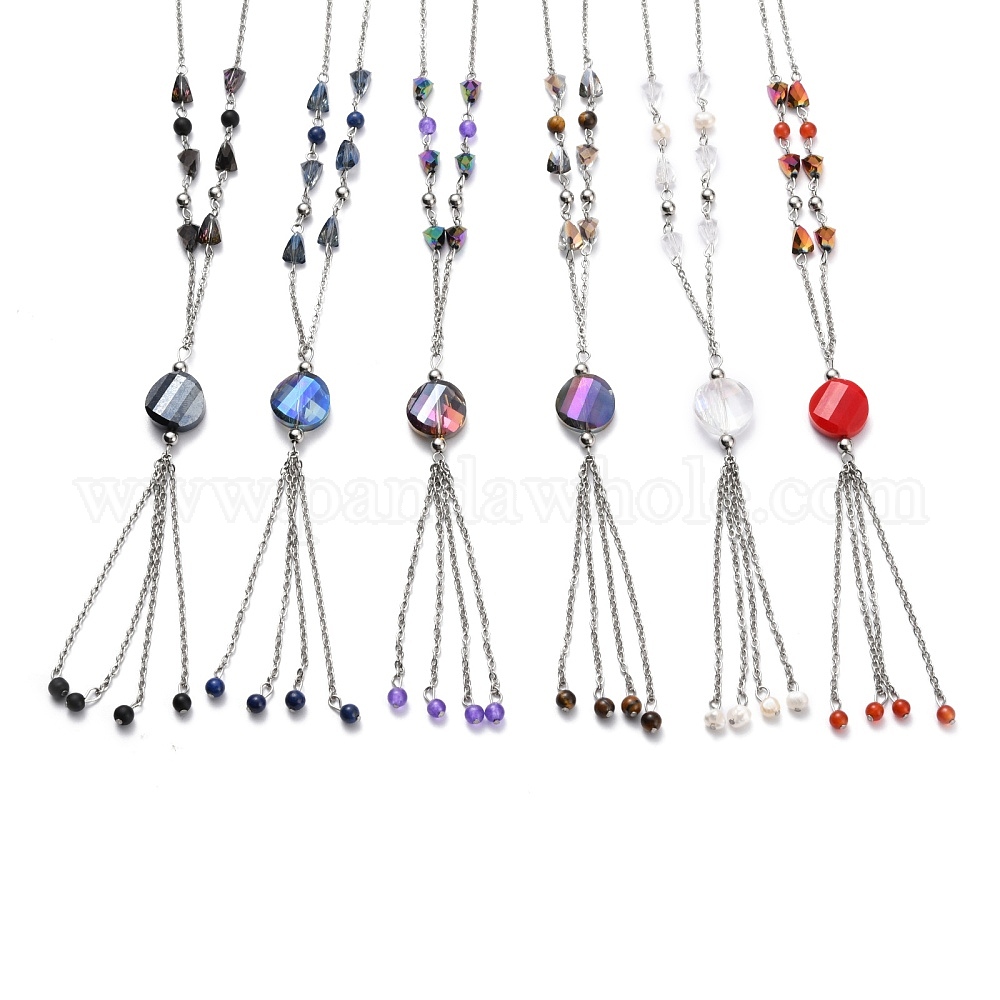 304 ожерелья из нержавеющей стали бисером, с гранеными стеклянными бусинами и круглыми бусинами из натуральных драгоценных камней, разноцветные