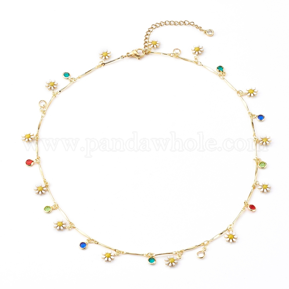 Латунь эмаль кулон ожерелья, со стеклом и 304 застежками из нержавеющей стали в форме когтей лобстера, цветок, красочный