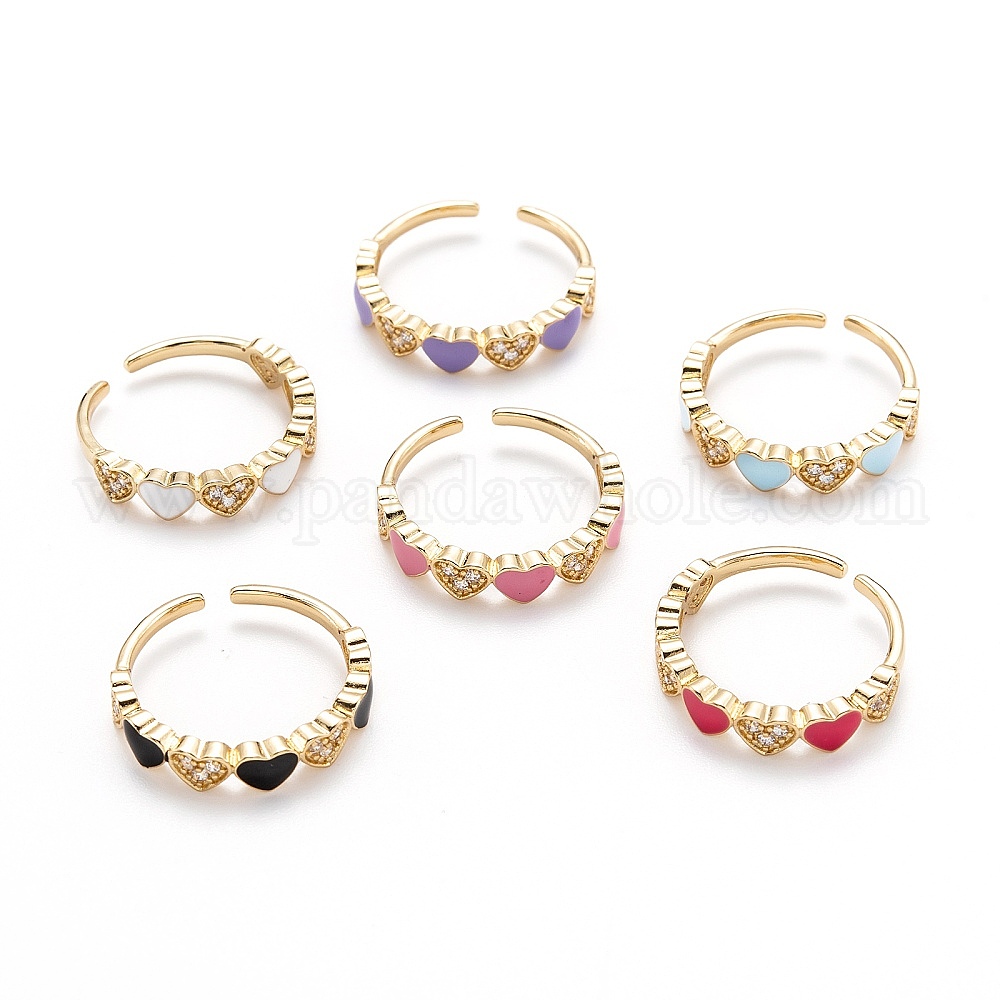 Латунные кольца из манжеты с прозрачным цирконием, открытые кольца, с эмалью, долговечный, сердце, золотые