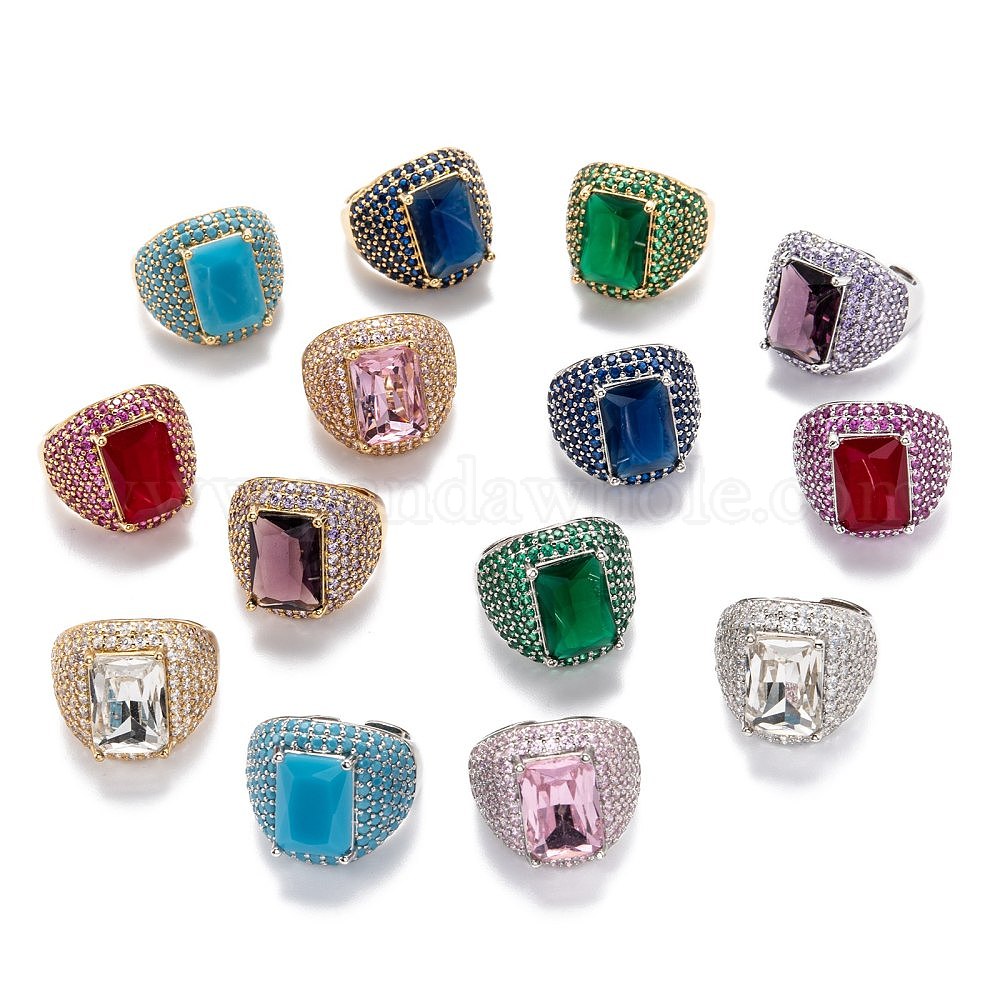 • (52) Непрозрачная лаванда Латунные микро проложить манжеты кольца кубического циркония, открытые кольца, долговечный, прямоугольные, золотые, разноцветные, размер США 6 3/4, 3.5~19.5 мм, внутренний диаметр: 17.1 мм, прямоугольник: 14.5x10.5 мм.
