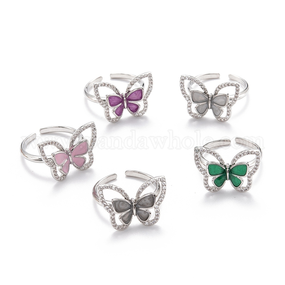 Латунные кольца из манжеты с прозрачным цирконием, открытые кольца, с эмалью, долговечный, бабочка