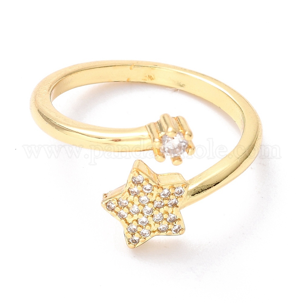 • Настоящее золото 18K Латунные кольца из манжеты с прозрачным цирконием, открытые кольца, долговечный, звезда, реальный 18 k позолоченный, размер США 7 1/4 (17.5 мм), внутренний диаметр: 17.5 мм