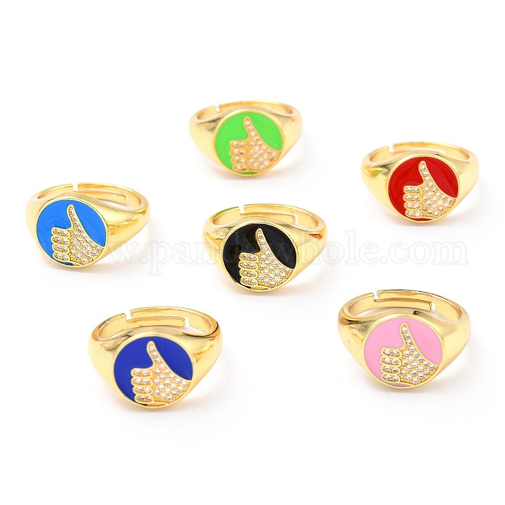 Регулируемые кольца из натуральной латунной эмали с золотым покрытием, с четким кубического циркония, плоский круглый с языком жестов, палец вверх знак