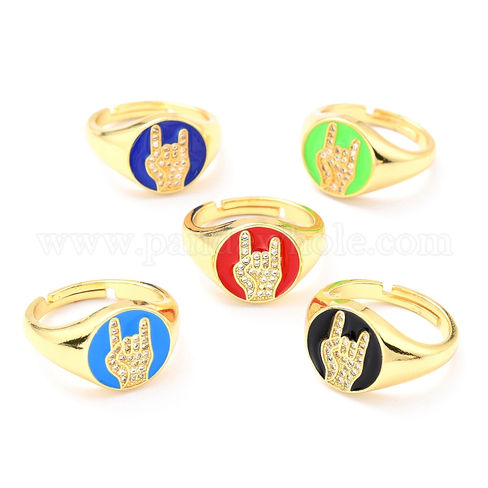 Регулируемые кольца из натуральной латунной эмали с золотым покрытием, с четким кубического циркония, плоский круглый с языком жестов, я тебя люблю