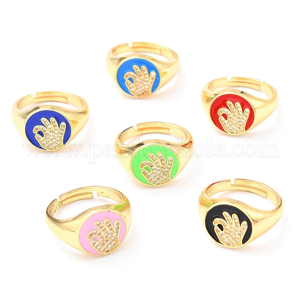 Регулируемые кольца из натуральной латунной эмали с золотым покрытием, с четким кубического циркония, плоский круглый с языком жестов, ок жест