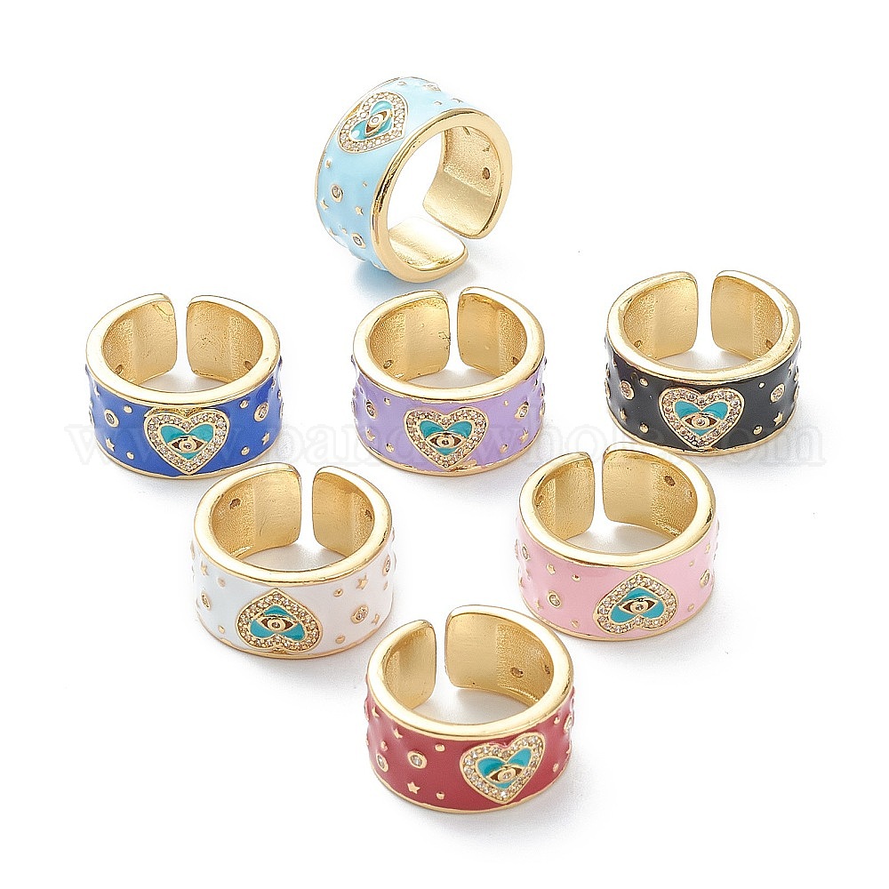 Кольца-манжеты из прозрачной латуни с кубическим цирконием, открытые кольца, долговечный, с эмалью, реальный 18 k позолоченный, Сердце с глаз