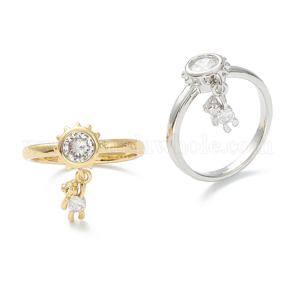 Латунные прозрачные кольца с кубическим цирконием, долговечный, плоские круглые с медведем (028QJW)