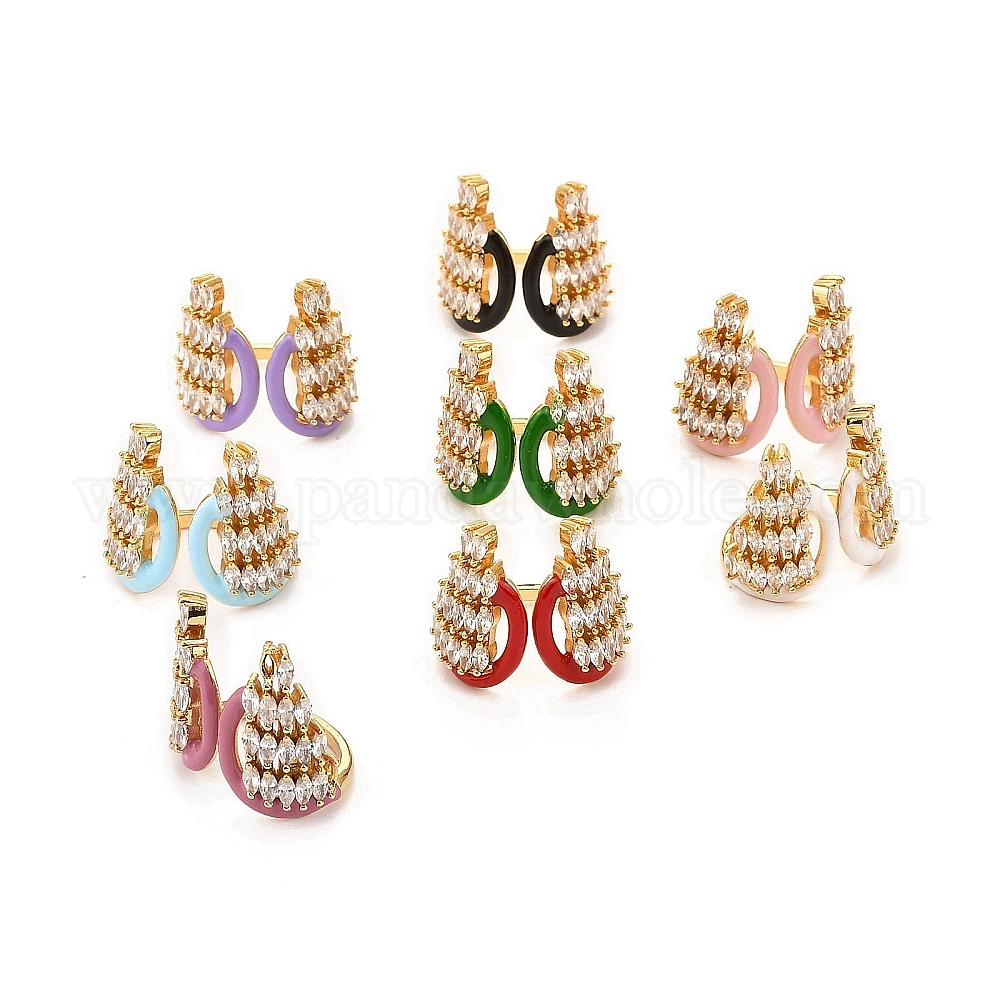 Кольцо-манжета с кубическим цирконием из латуни с микропаве, открытые кольца с эмалью, реальный 18 k позолоченный, корона