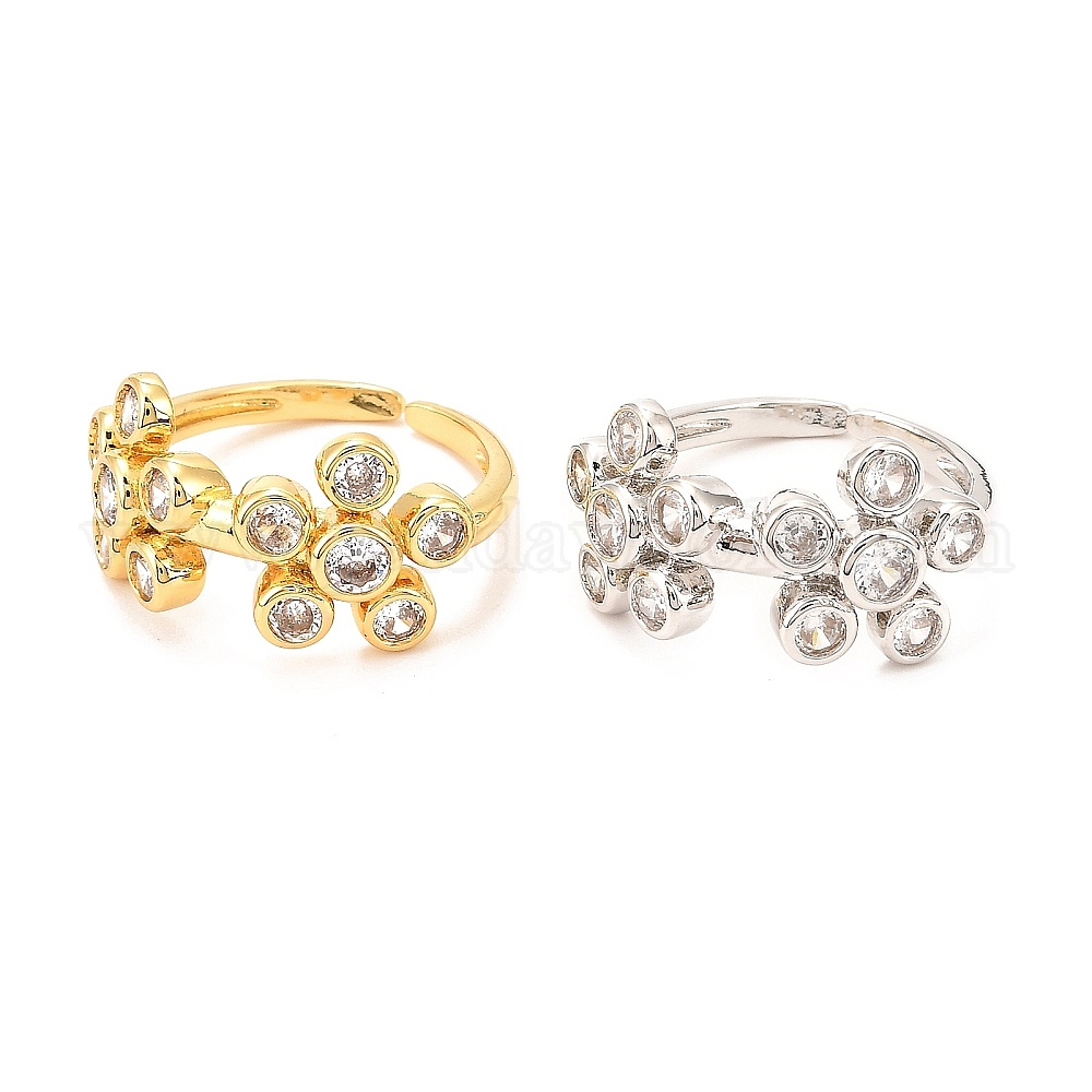 Кольцо-манжета с кубическим цирконием из латуни с микропаве, открытые кольца, долговечный, два цветка
