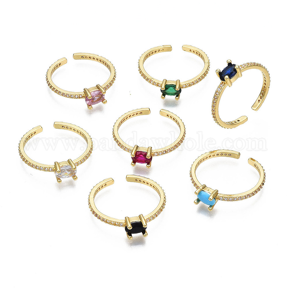 Латунные микро проложить манжеты кольца кубического циркония, открытые солитерные кольца, реальный 16 k позолоченный, без кадмия, без никеля и без свинца