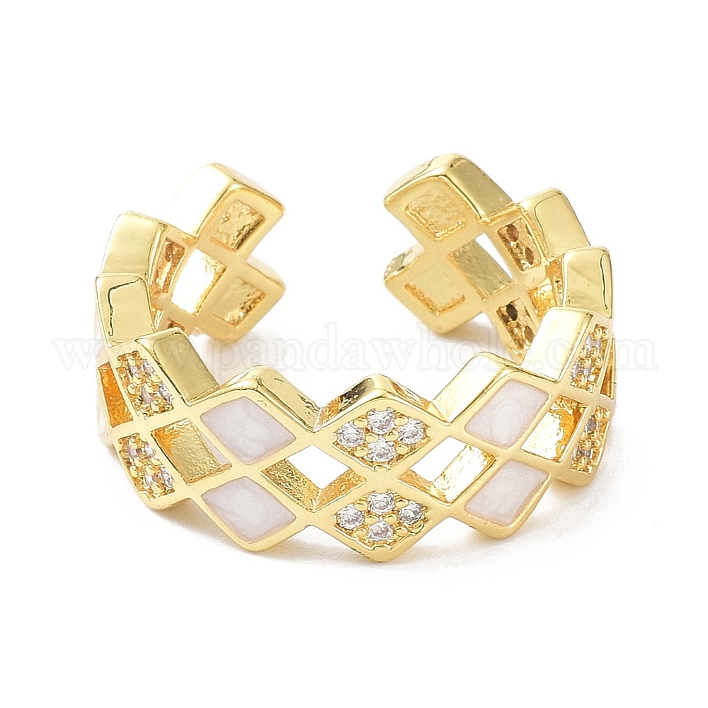 Двухрядные ромб настоящие 18 позолоченные кольца-манжеты для девочек и женщин, открытые кольца из латуни, микропаве, кубический цирконий, cmолой