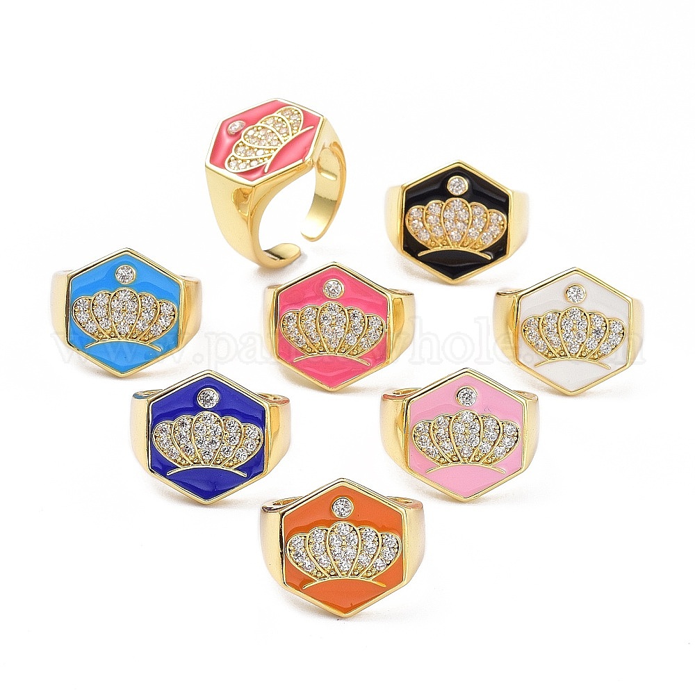 Кольцо с шестигранной головкой и прозрачным кубическим цирконием для женщин, настоящие 18 позолоченные латунные эмалевые открытые манжеты с золотым покрытием