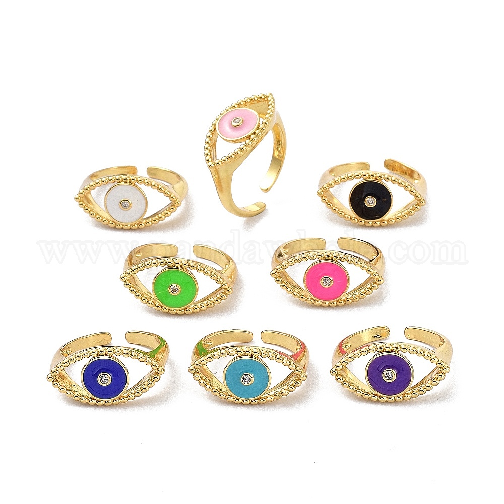 Кольцо с широким диапазоном прозрачного кубического циркония от сглаза для девочек и женщин, настоящие 18 позолоченные латунные эмалевые открытые манжеты с золотым покрытием