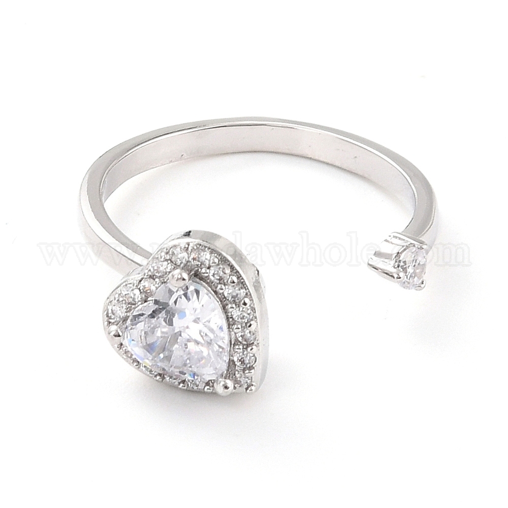 • Платина Открытое кольцо с вращающимся сердцем для женщин, латунные кубические циркониевые кольца-спиннеры, регулируемое кольцо манжеты для снятия стресса, платина, размер США 7 3/4 (17.9 мм)