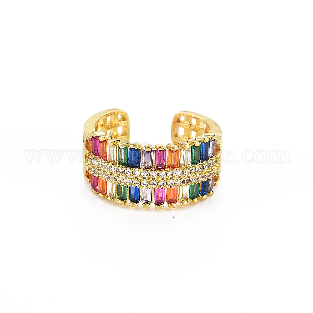 Манжеты из латуни с микро паве кубический цирконий для женщин, настоящие позолоченные открытые кольца с широкой полосой 18k, без никеля