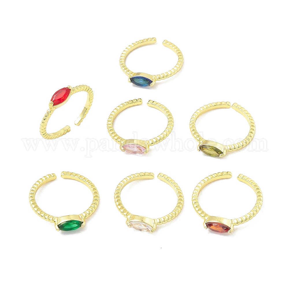 Открытое кольцо-манжета с кубическим цирконом и конским глазом, настоящее 18k позолоченное латунное кольцо-солитер для женщин, без свинца и без кадмия