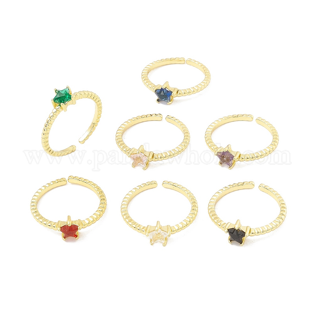 • (52) Непрозрачная лаванда Открытое кольцо-манжета со звездой из кубического циркона, настоящее 18k позолоченное латунное кольцо-солитер для женщин, без свинца и без кадмия, разноцветные, размер США 6 1/2 (16.9 мм)