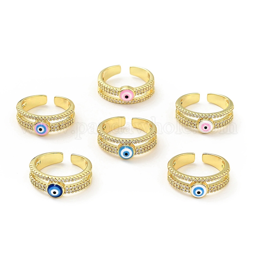 Эмалевое кольцо-манжета сглаз с кубическим цирконием, настоящие позолоченные украшения из латуни для женщин, без кадмия и без свинца