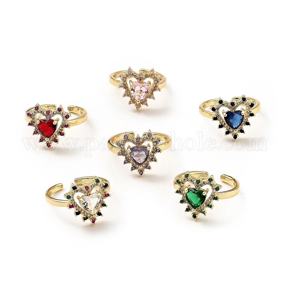 Открытое кольцо-манжета в форме сердца из кубического циркония, настоящие позолоченные украшения из латуни для женщин, без кадмия и без свинца