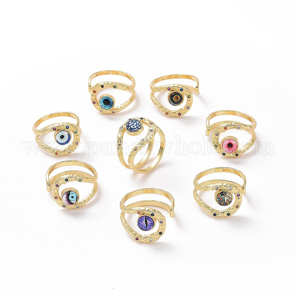 Открытое кольцо-манжета из полимерного глаза с кубическим цирконием, полое широкое полое кольцо из настоящей позолоченной 18k для женщин, без кадмия и без свинца