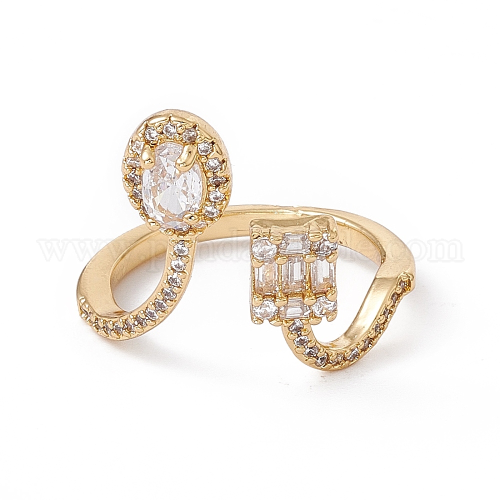 Прозрачный кубический циркон, плоская капля и квадратное открытое кольцо-манжета, стеллаж для латунных украшений для женщин, без кадмия, без никеля и без свинца (02F53Y)