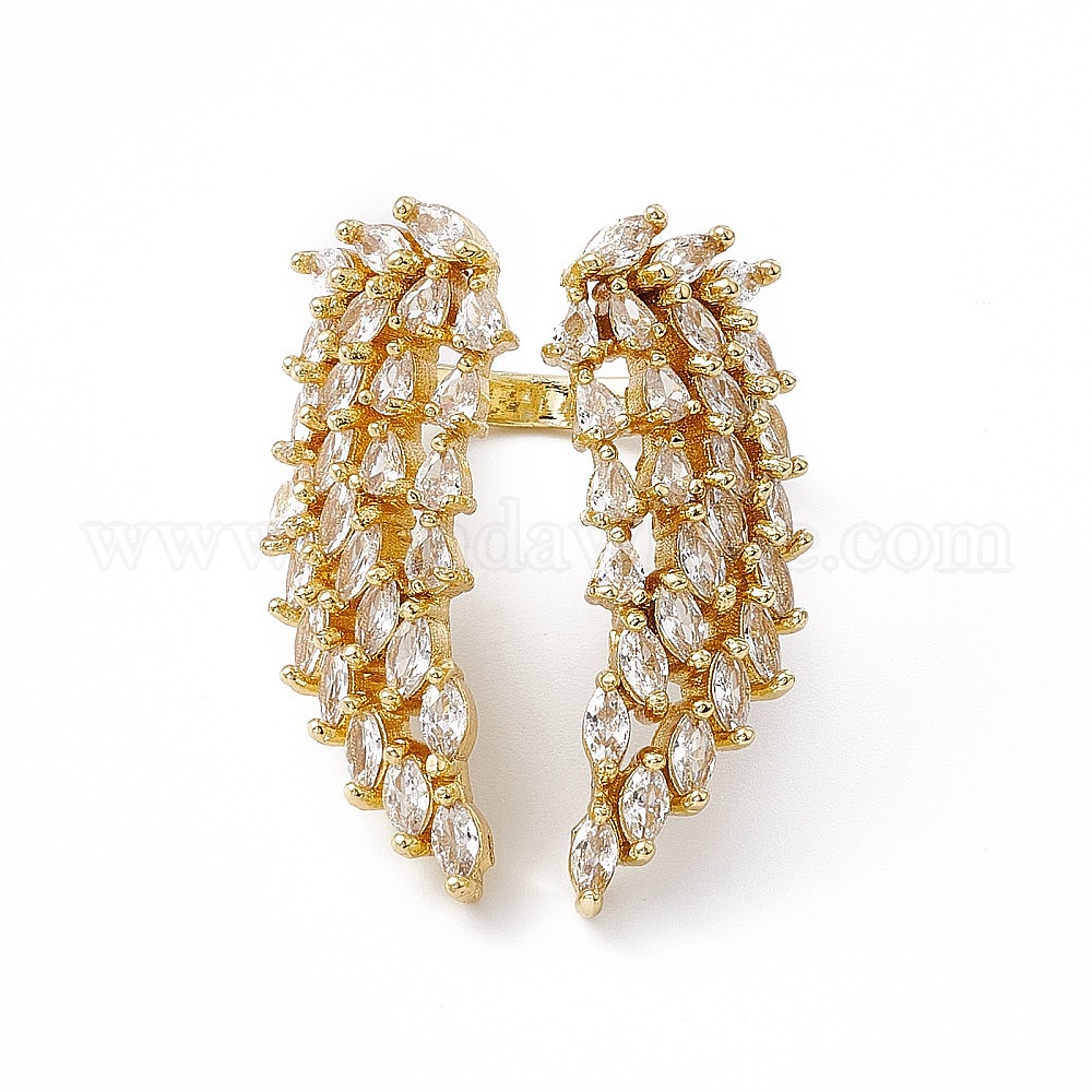 Кубический цирконий двойное крыло ангела открытое кольцо-манжета, настоящие позолоченные украшения из латуни для женщин, без свинца и без кадмия