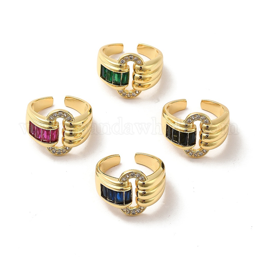 Открытое кольцо-манжета с овальной пряжкой из кубического циркония, широкое женское кольцо из настоящей позолоченной латуни с покрытием 18k (02FYAS)