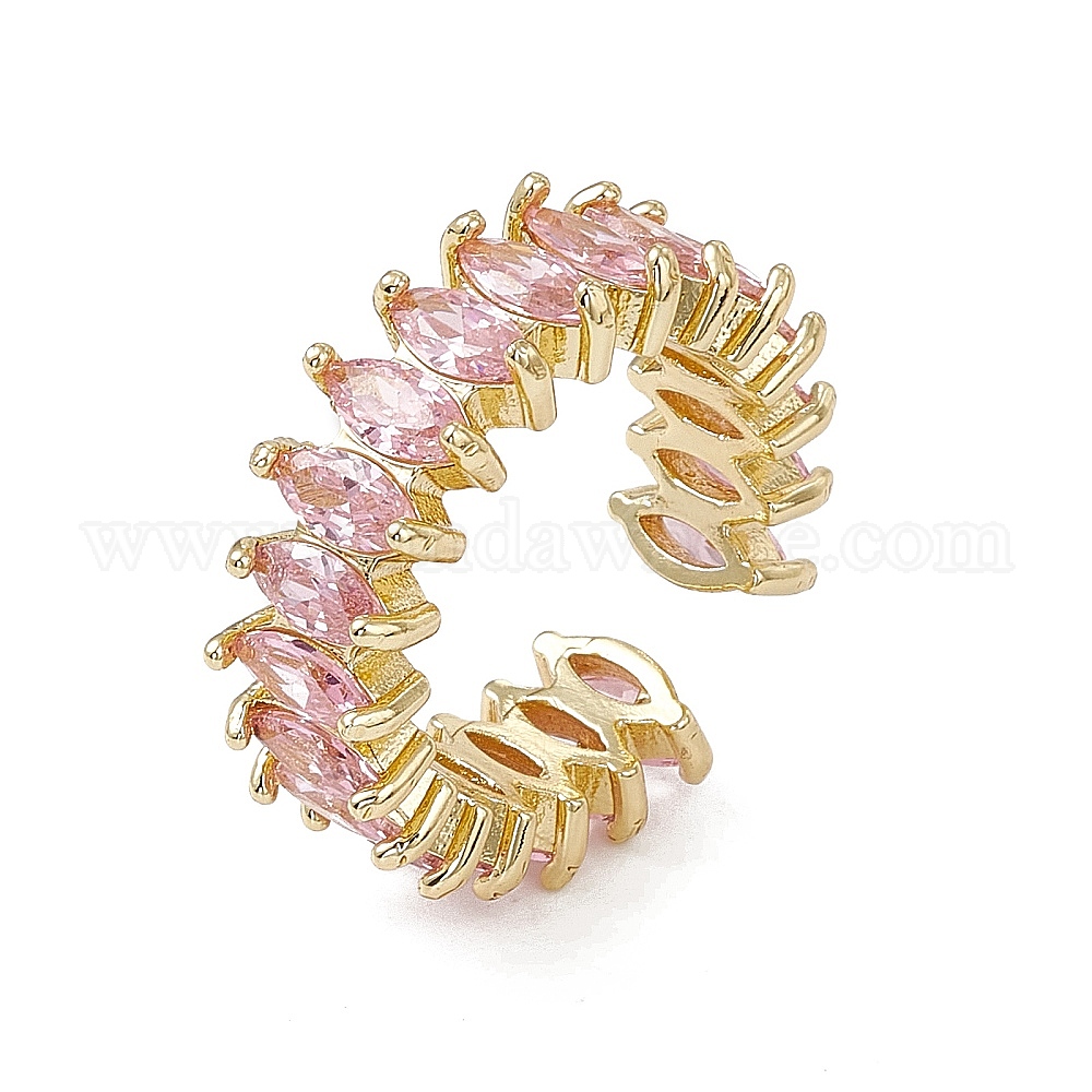 Кольца-манжеты из латуни с кубическим цирконием для женщин, открытое кольцо с покрытием «конский глаз», без свинца и без кадмия, реальный 18 k позолоченный