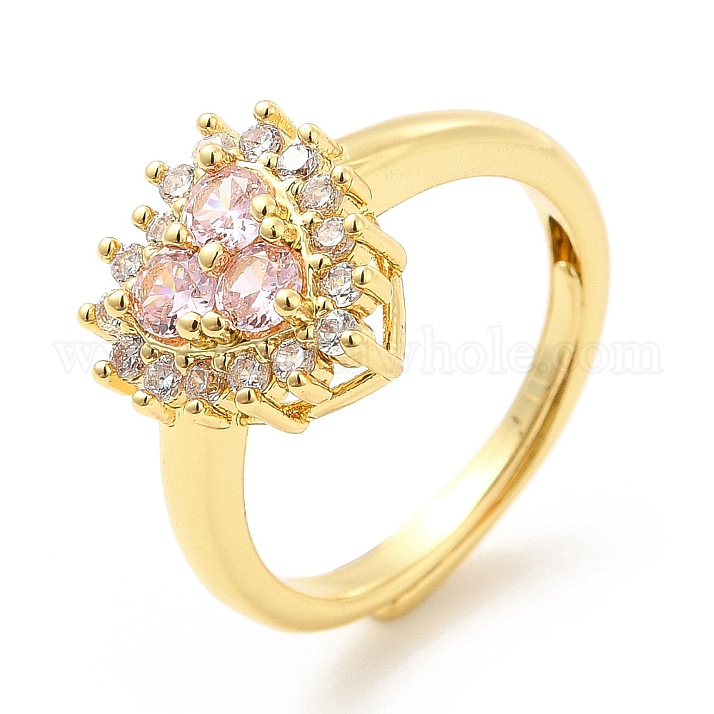 • Настоящее золото 18K Реечное покрытие латунь микро паве розовые и кристаллы кубический цирконий сердце регулируемые кольца, без кадмия и без свинца, долговечный, реальный 18 k позолоченный, размер США 4 3/4, 2 мм, внутренний диаметр: 15.4 мм