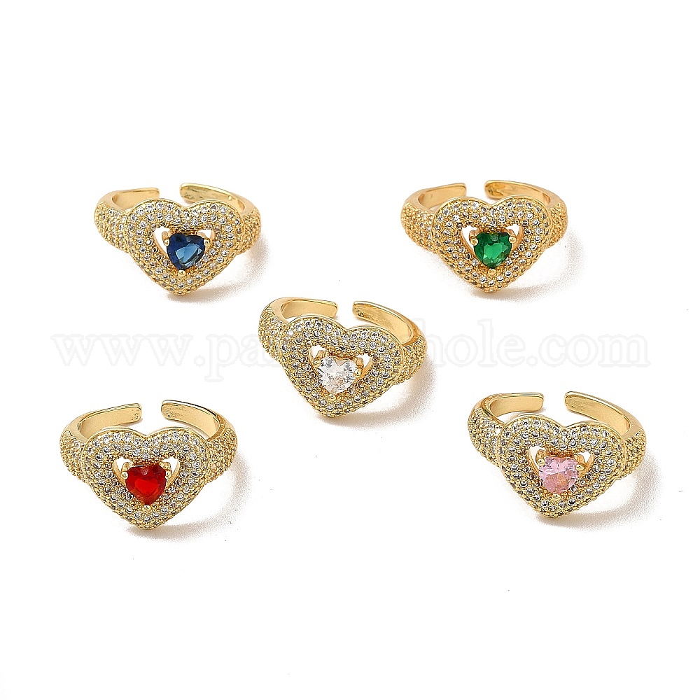 Открытое кольцо-манжета в форме сердца из кубического циркония, настоящие позолоченные украшения из латуни для женщин, без кадмия и без свинца