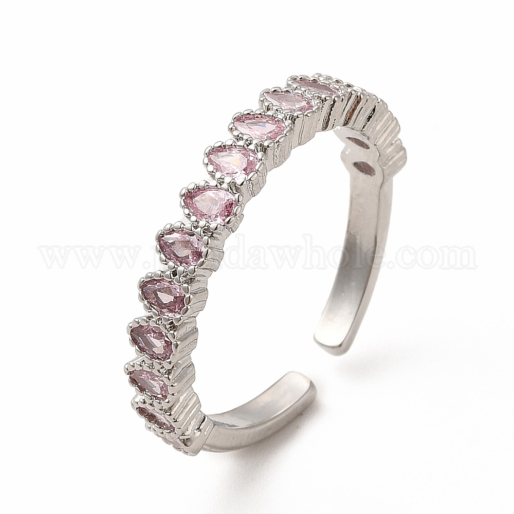 Открытое кольцо-манжета каплевидного цвета из розового циркония, стеллаж для латунных украшений для женщин, без свинца и без кадмия