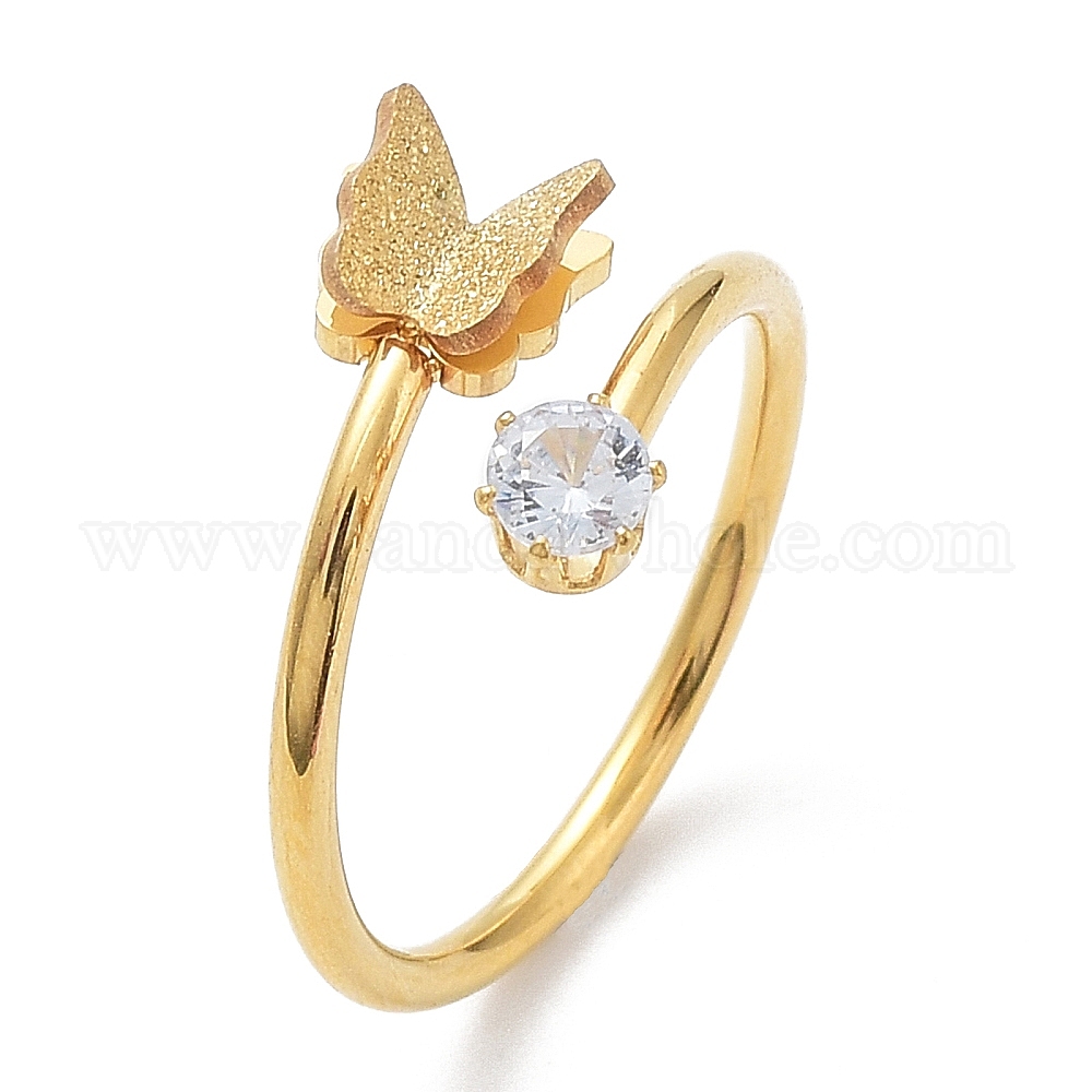 Ионное покрытие (IP) 304 Открытая манжета-бабочка из нержавеющей стали с фианитом