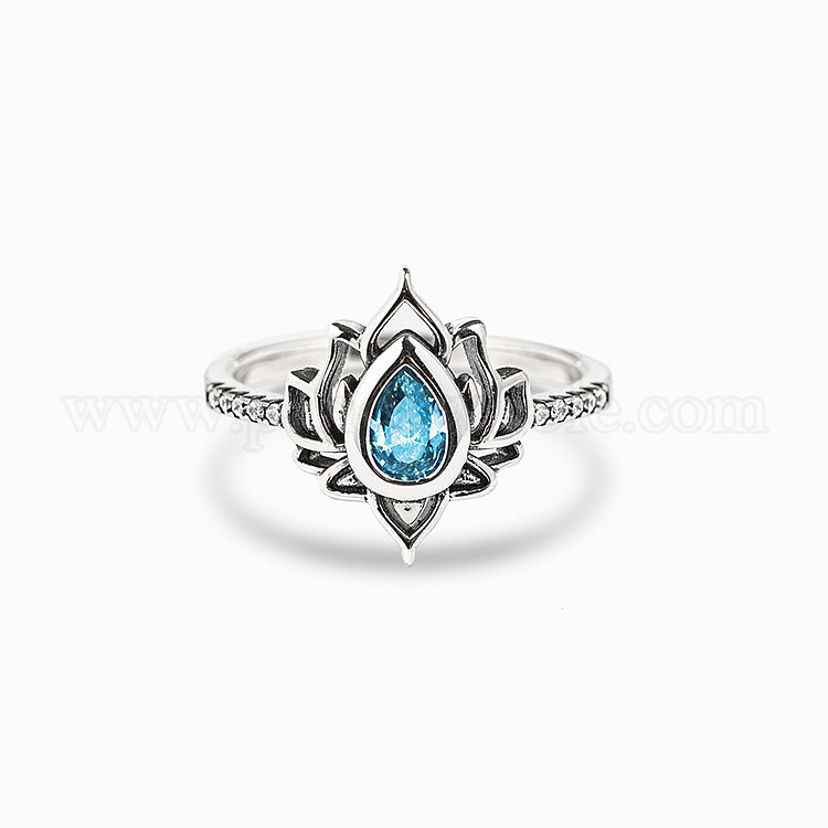 Винтажное кольцо с цветком лотоса и ювелирным украшением в форме капли для женщин - просто и модно.