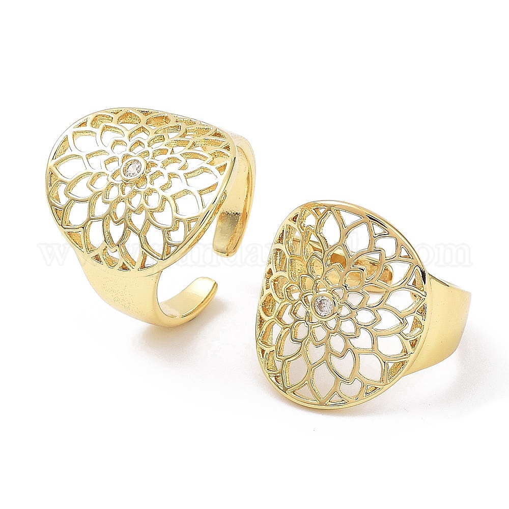 Латунное полое цветочное открытое манжетное кольцо с фианитом, без кадмия и без свинца