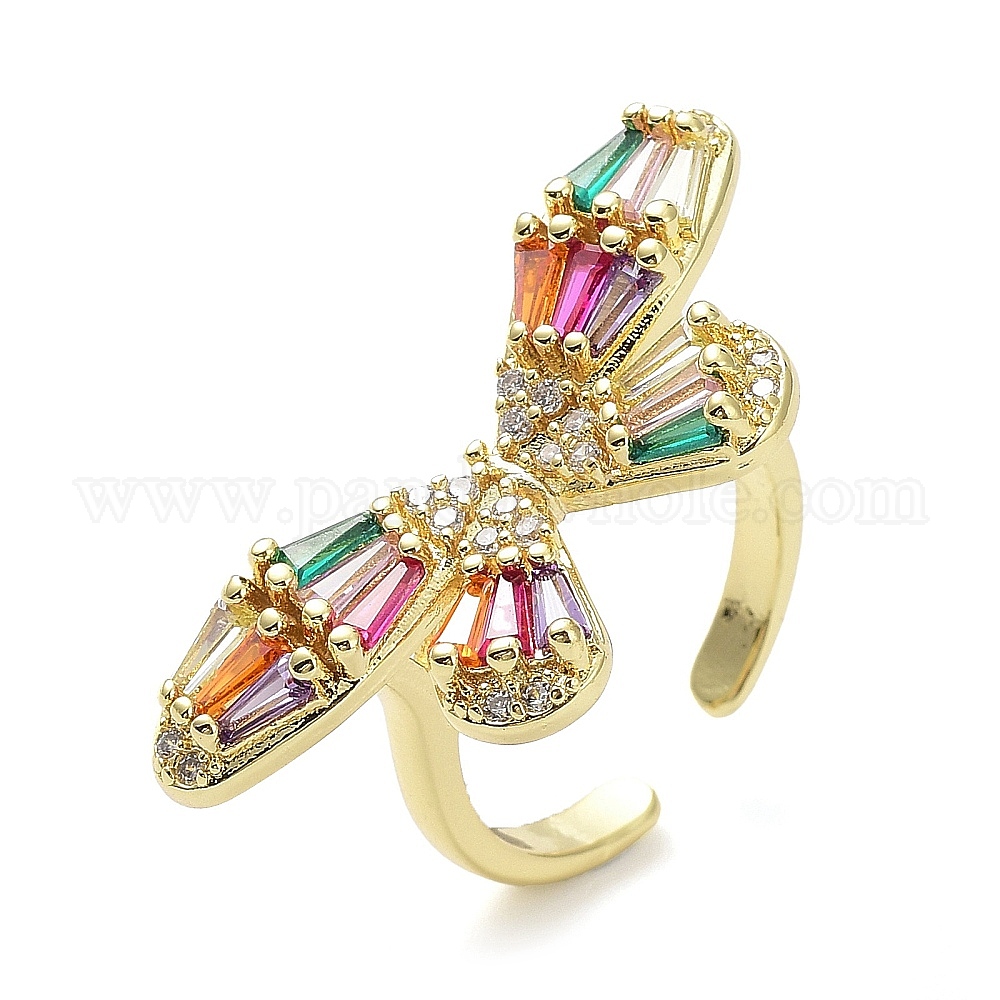 Латунные микро проложить кубического циркония кольца, долговечный, реальный 18 k позолоченный, без кадмия и без свинца, бабочка