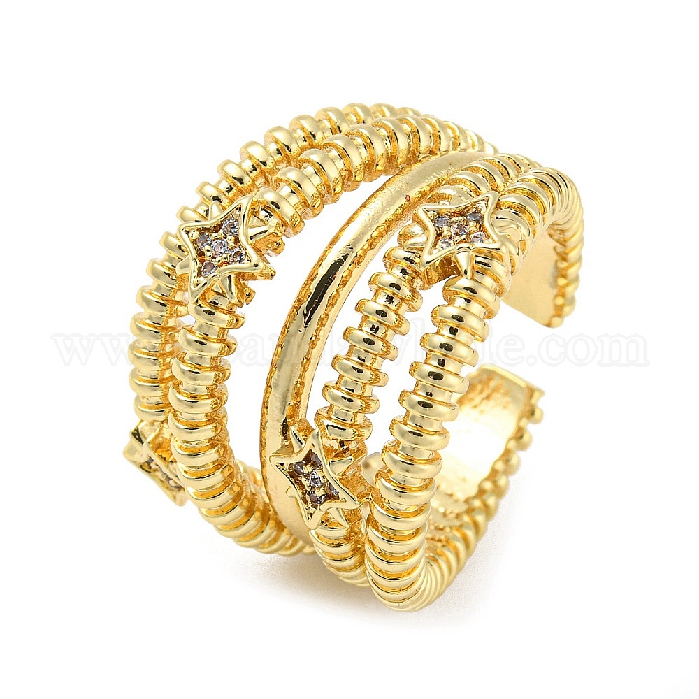 Покрытие стойки латунное многострочное открытое кольцо-манжета, кольцо на палец со звездой из кубического циркония, без кадмия и без свинца