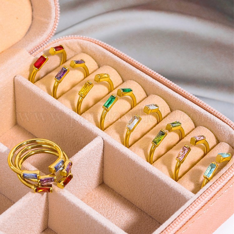 Прямоугольное открытое кольцо-манжета в стиле камня с кубическим цирконом, золотое кольцо из нержавеющей стали