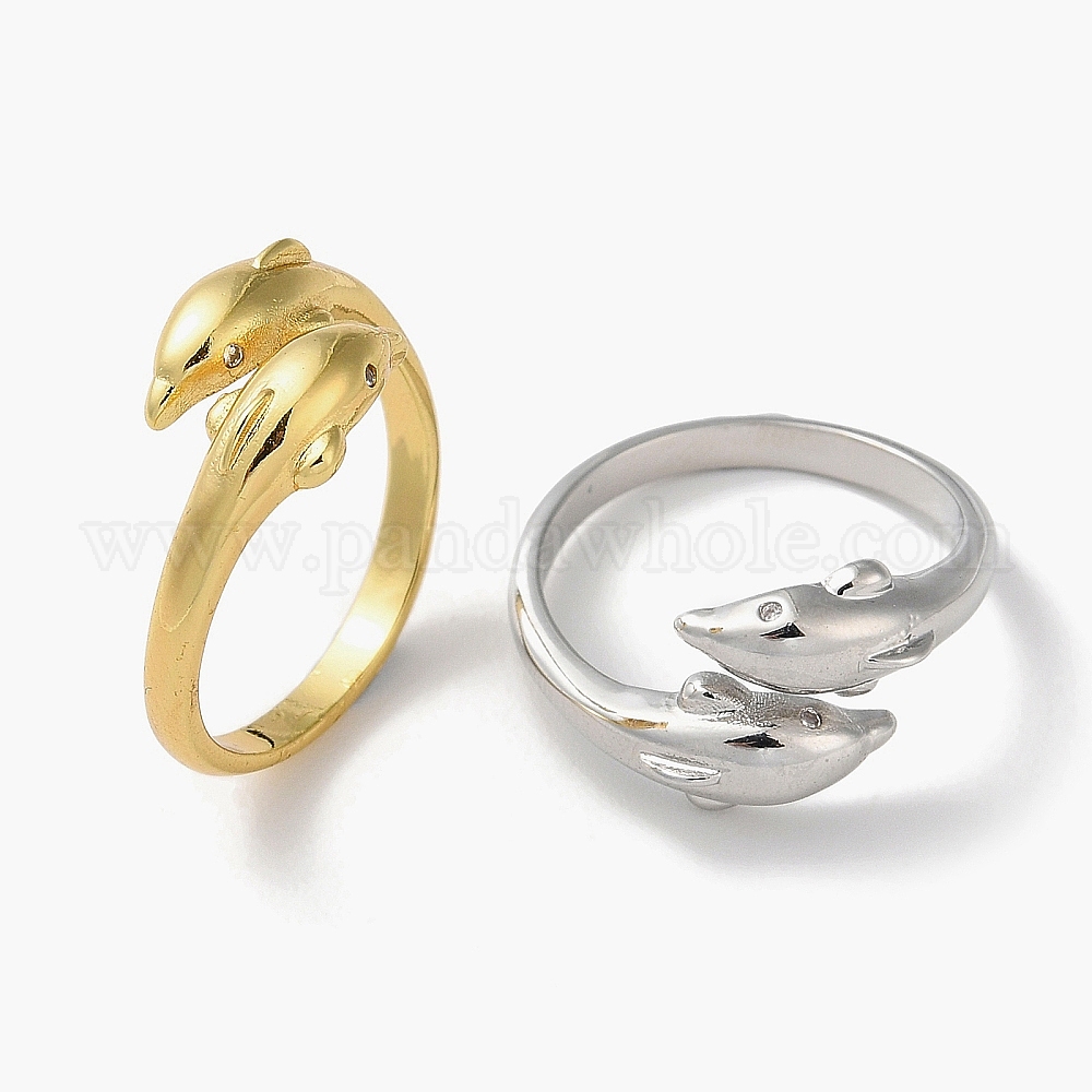 Открытые манжеты из латуни с фианитами, дельфин