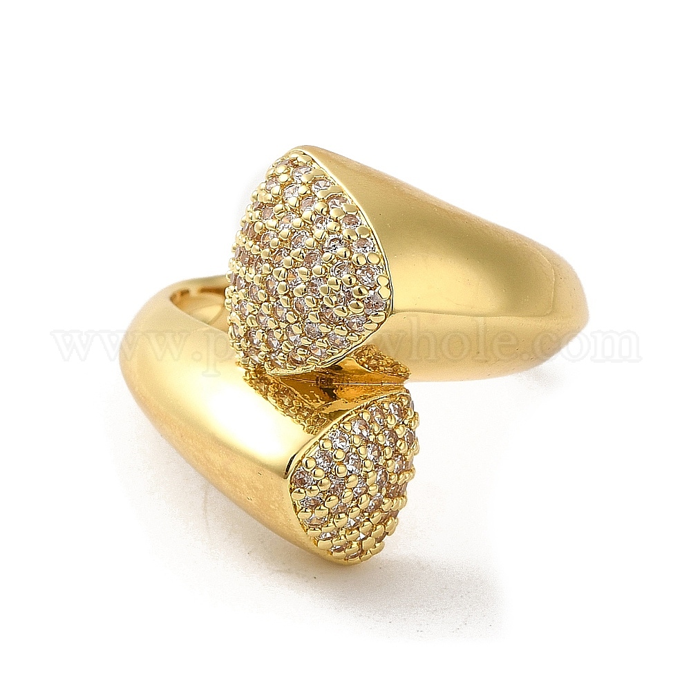 • Настоящее золото 18K Стойка латунная каплевидная открытая манжета с фианитом, реальный 18 k позолоченный, размер США 7 (17.3 мм)