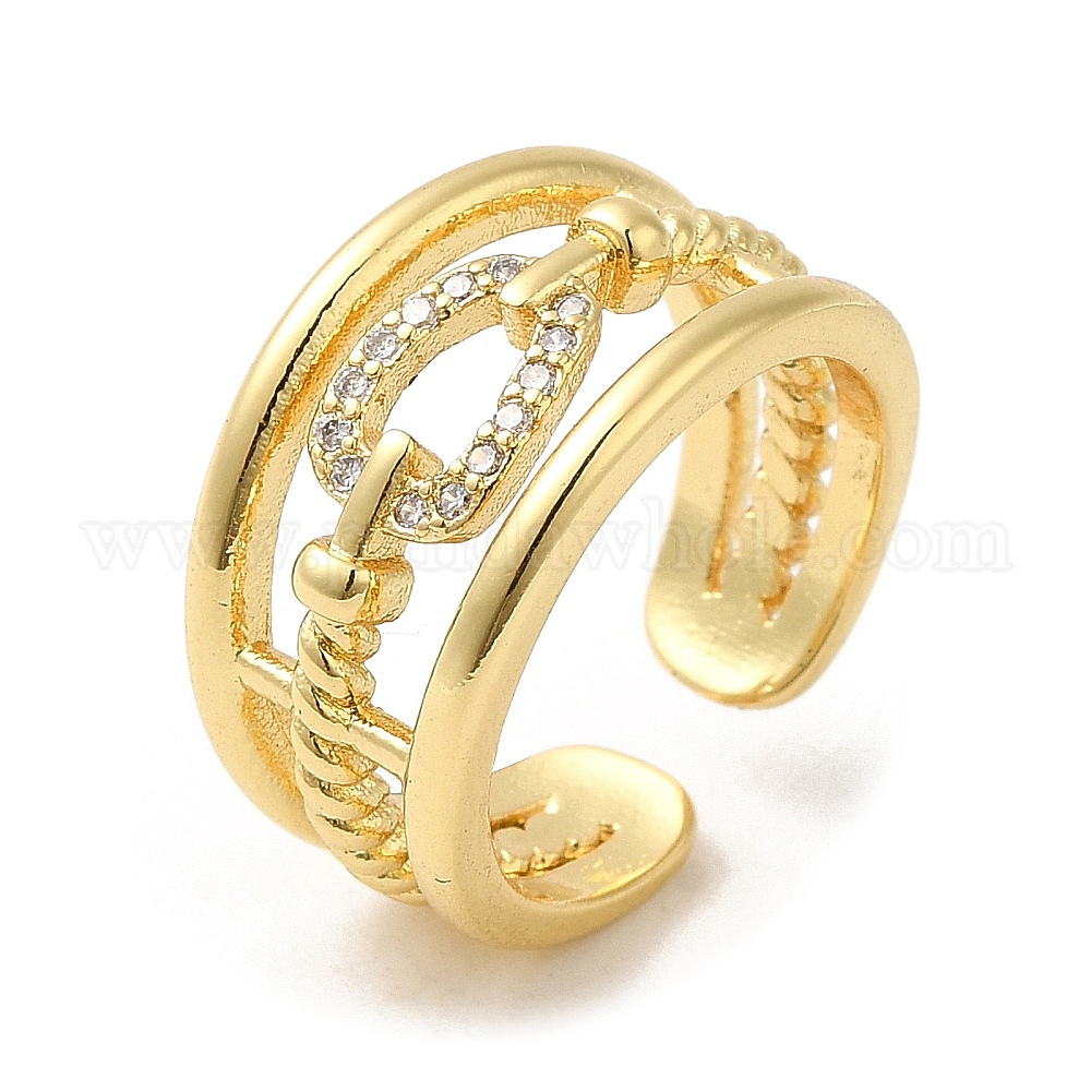 Покрытие стойки, настоящие 18k позолоченные латунные полые каплевидные открытые манжеты, с кубического циркония, долговечный, без свинца и без кадмия
