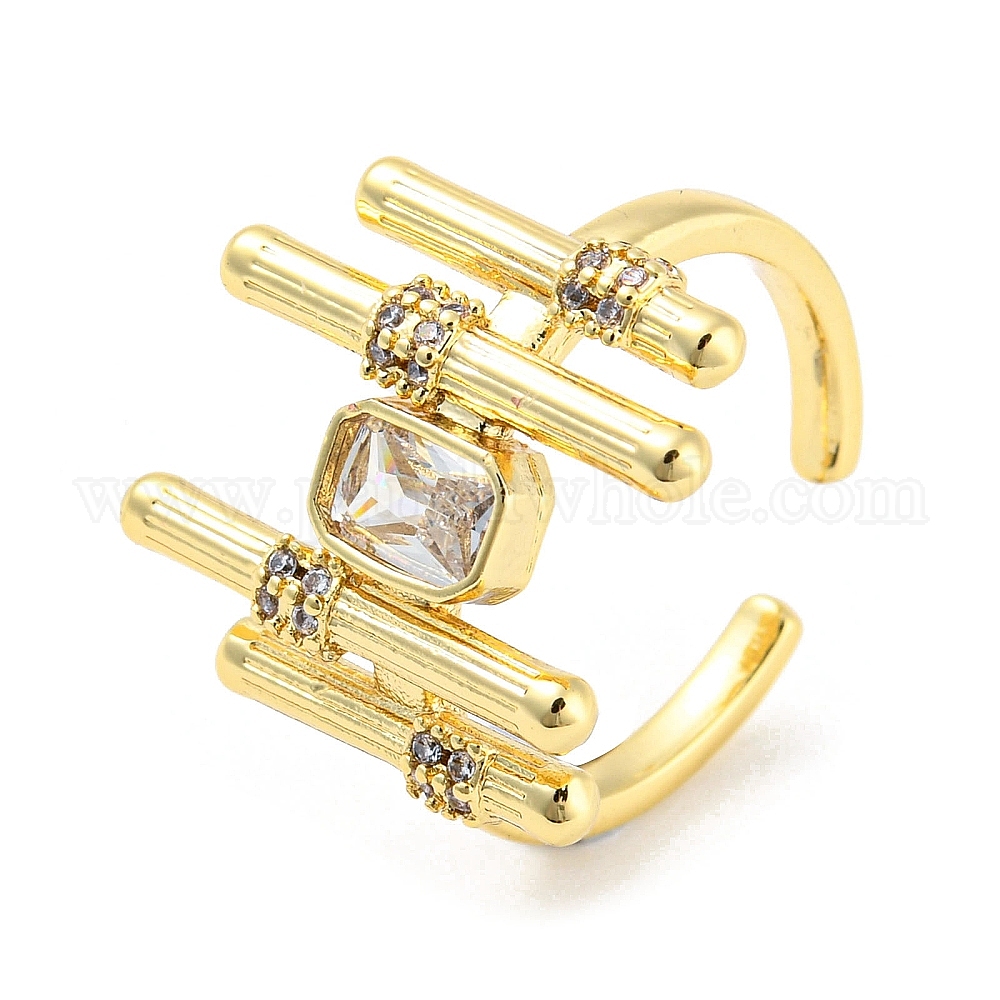Открытая манжета из латуни с микропаве из кубического циркония, без кадмия и без свинца, форма прямоугольника и бруска