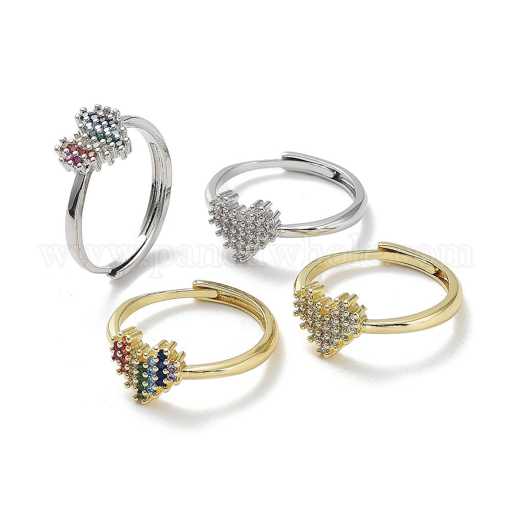 Регулируемые кольца с цирконием цвета радуги на День святого Валентина, латунные кольца перста сердца