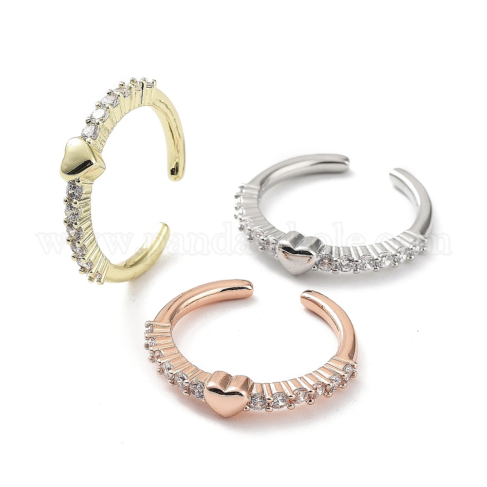 Покрытие стойки в форме сердца латунь микро паве прозрачный кубический цирконий открытые кольца, долговечное кольцо-манжета для женщин с покрытием, без свинца и без кадмия