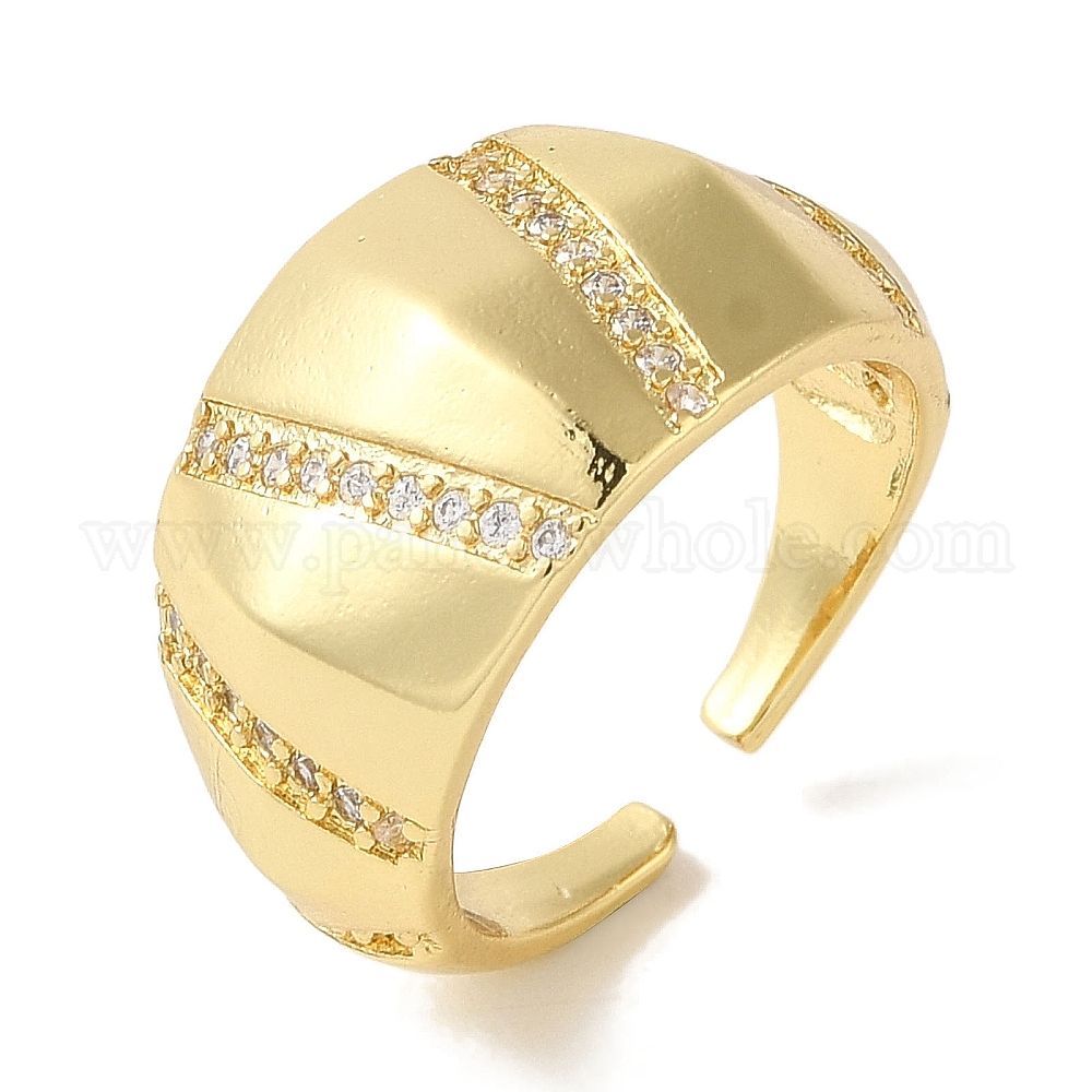 Латунное покрытие стойки, манжета из микропаве с кубическим цирконием, широкое открытое кольцо для женщин и мужчин, без кадмия и без свинца, долговечный