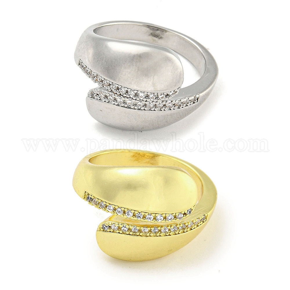 Латунное покрытие стойки с микро-паве и кубическим цирконием, открытые манжеты для женщин, каплевидные кольца, долговечный, без кадмия и без свинца